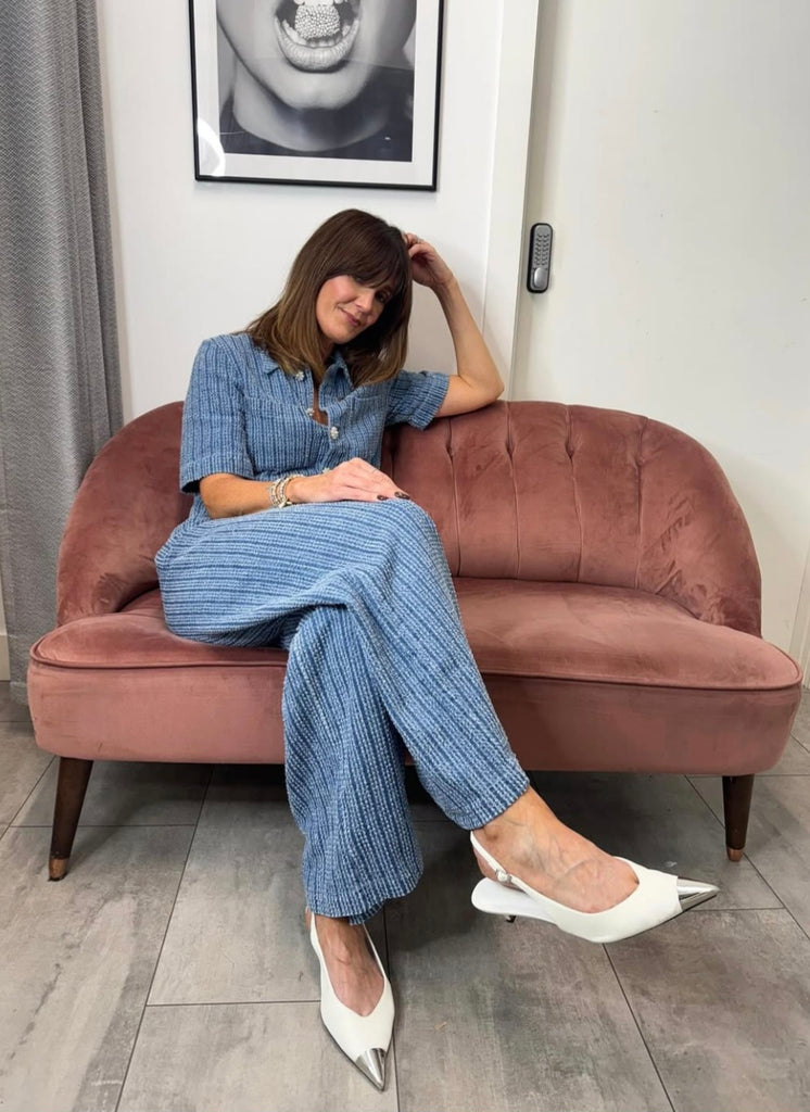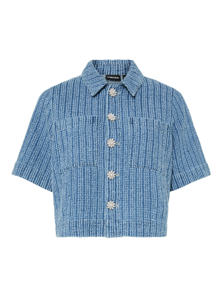 Pieces Textured Denim Diamante Button Top & Wide Leg Jeans - Items Sold Separately