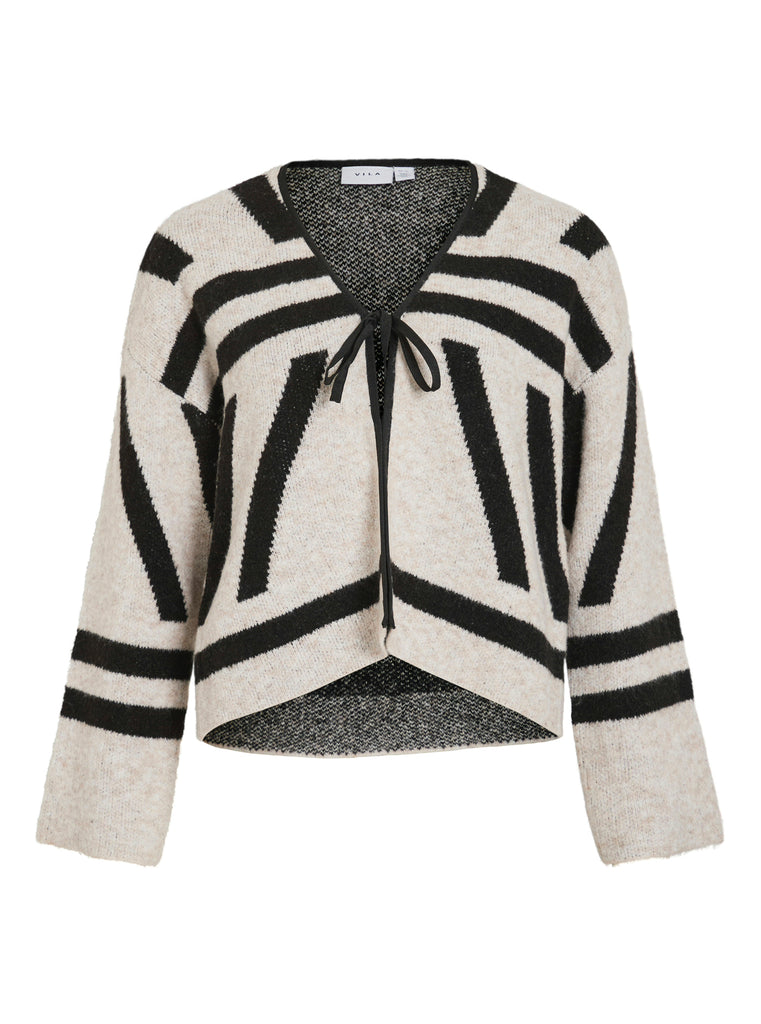 Vila Abstract Print Tie Knit Cardigan