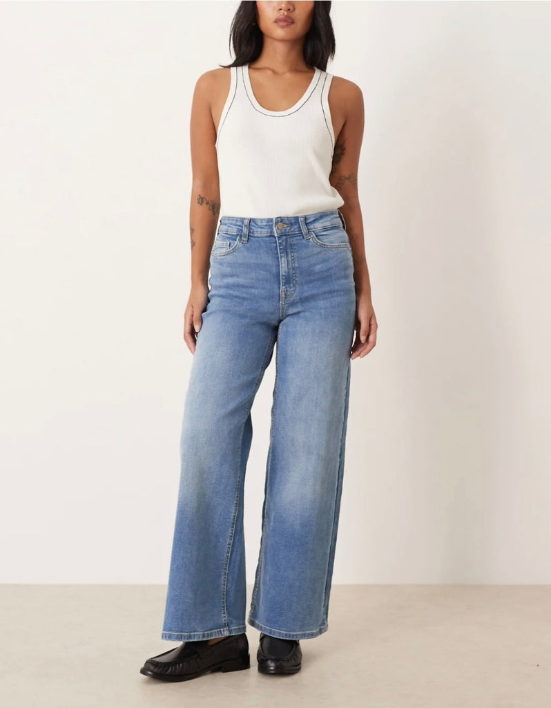 Only Juicy High Waist Wide Leg Jeans In Ecru