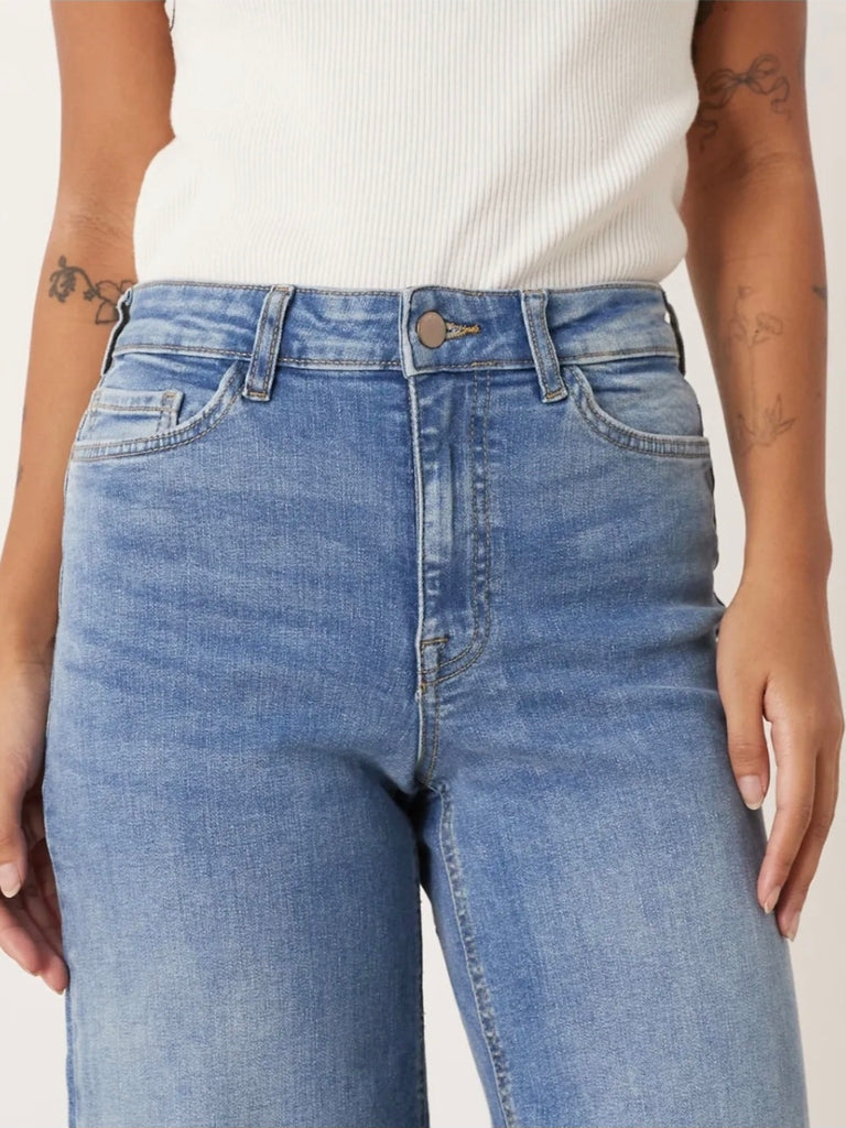 Only Emily High Waist Straight Leg Jeans In Mid Blue