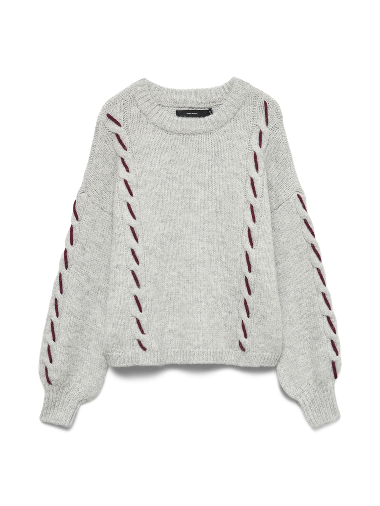 VM Cable Knit Jumper with Contrast Handstitch Detail In Grey