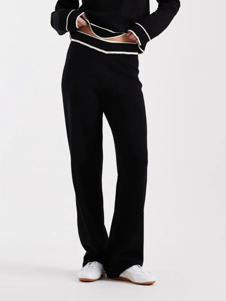 VM Knitted Trousers with Cream Contrast Piping in Black - Part of a Co-ord Set