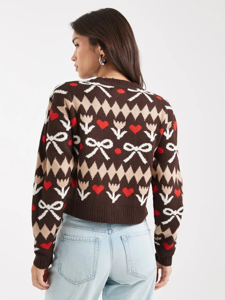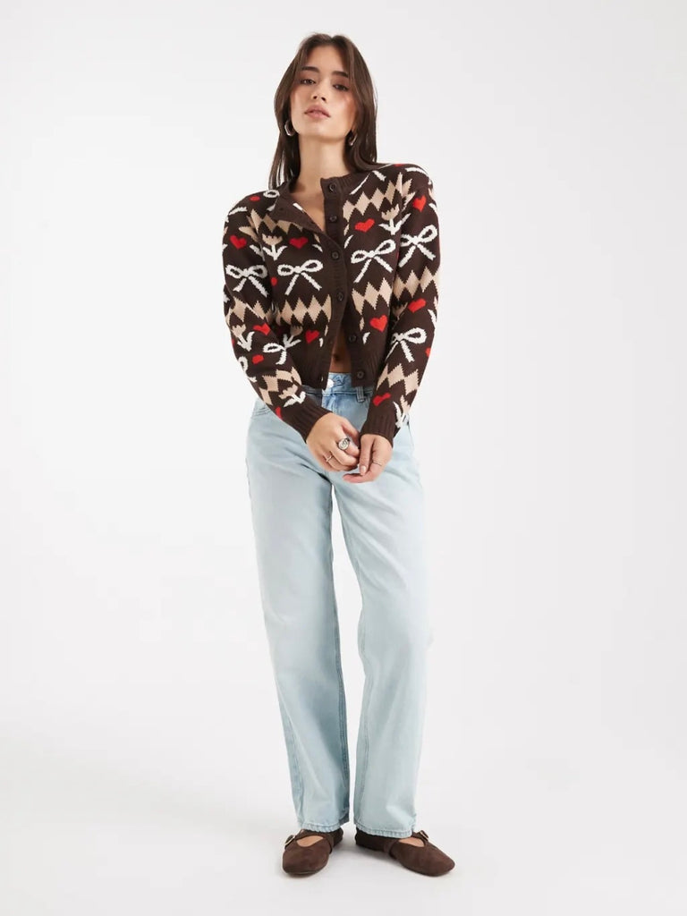 JDY Rosette Detail Button Front 3/4 Sleeve Cardigan