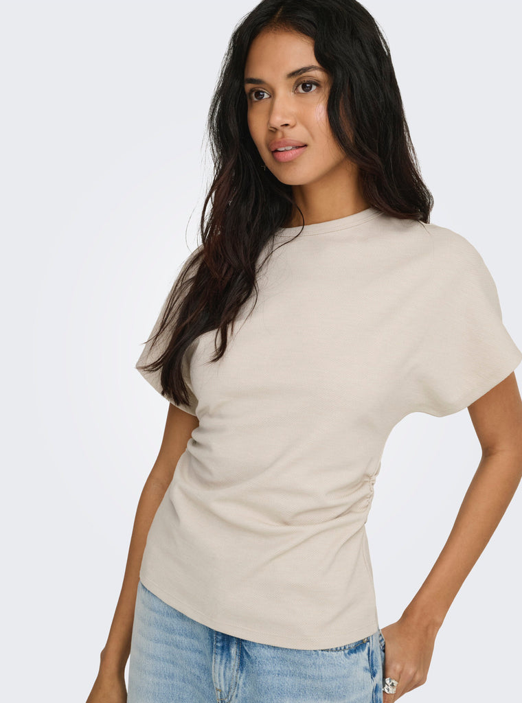 Only Round Neck Cinched Waist T-Shirt in Pumice Stone