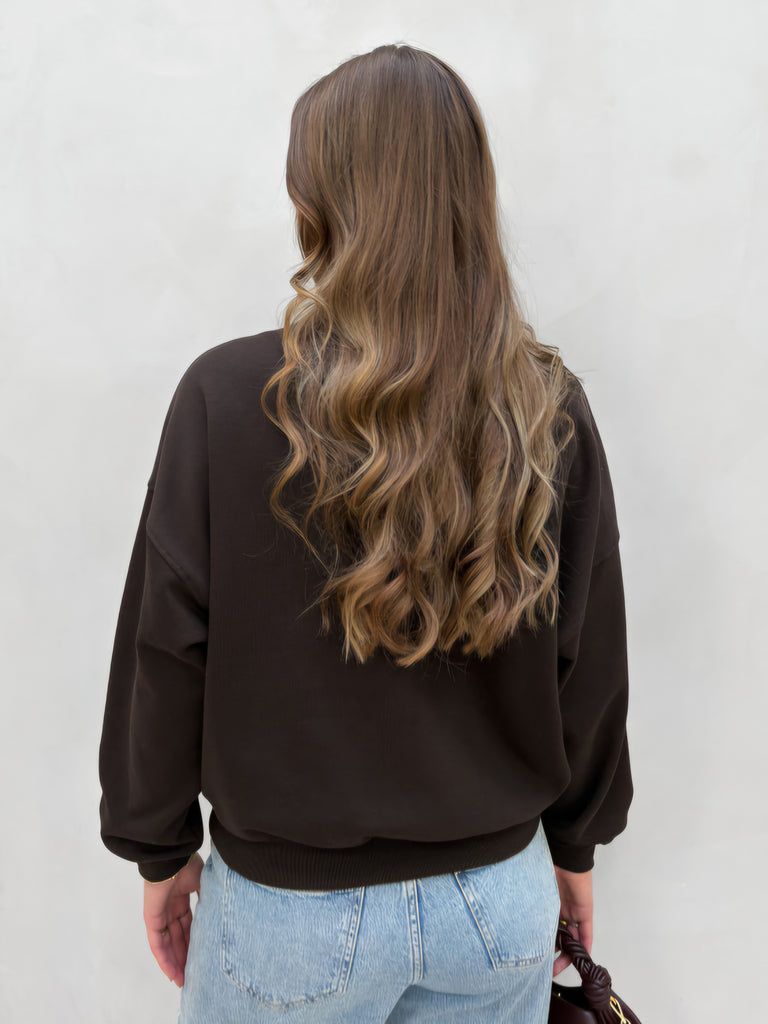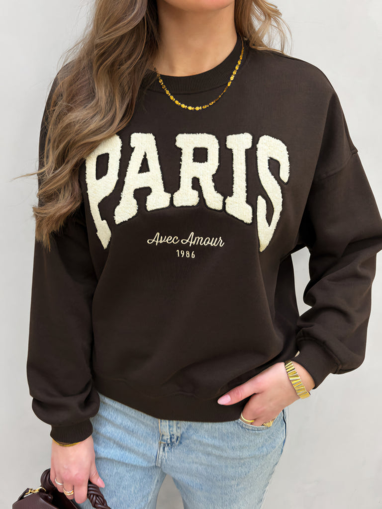 JDY Embroidered Paris Sweatshirt In Chocolate Brown