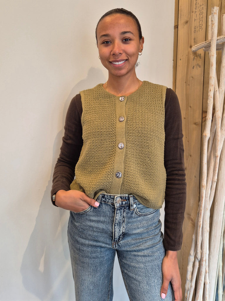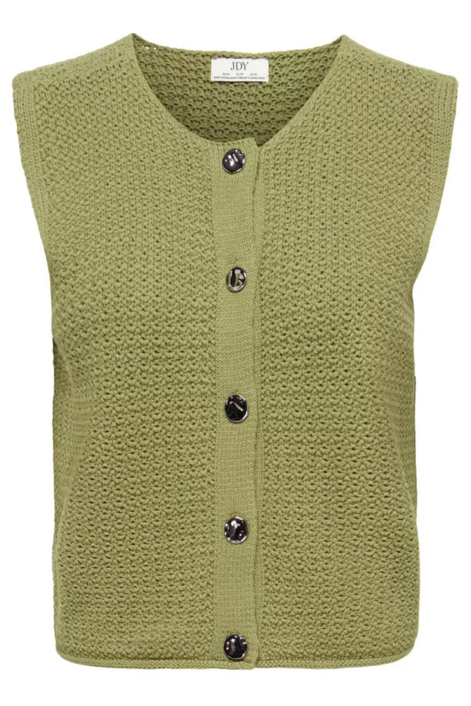 JDY Knitted Button Front Waistcoat In Olive Green