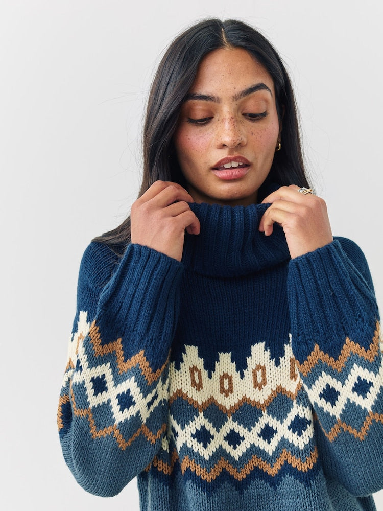Only Chunky Fairisle Roll Neck Knitted Jumper in Navy