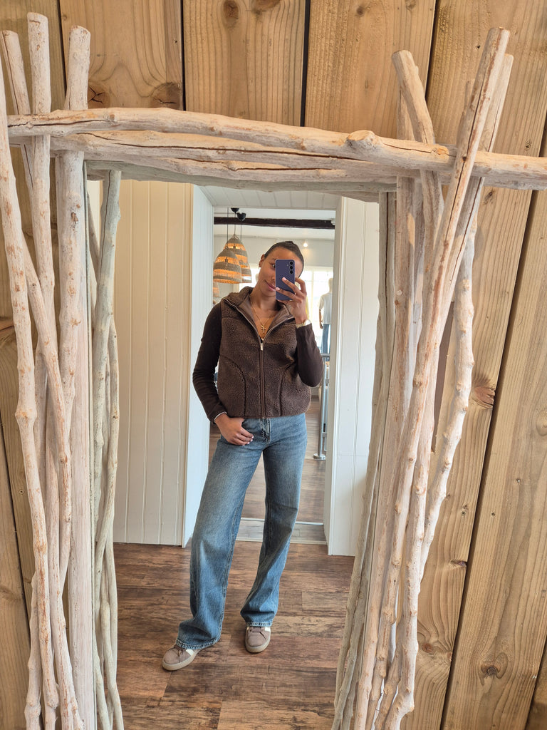 Pieces Zip Front Teddy Fleece Jacket In Beige