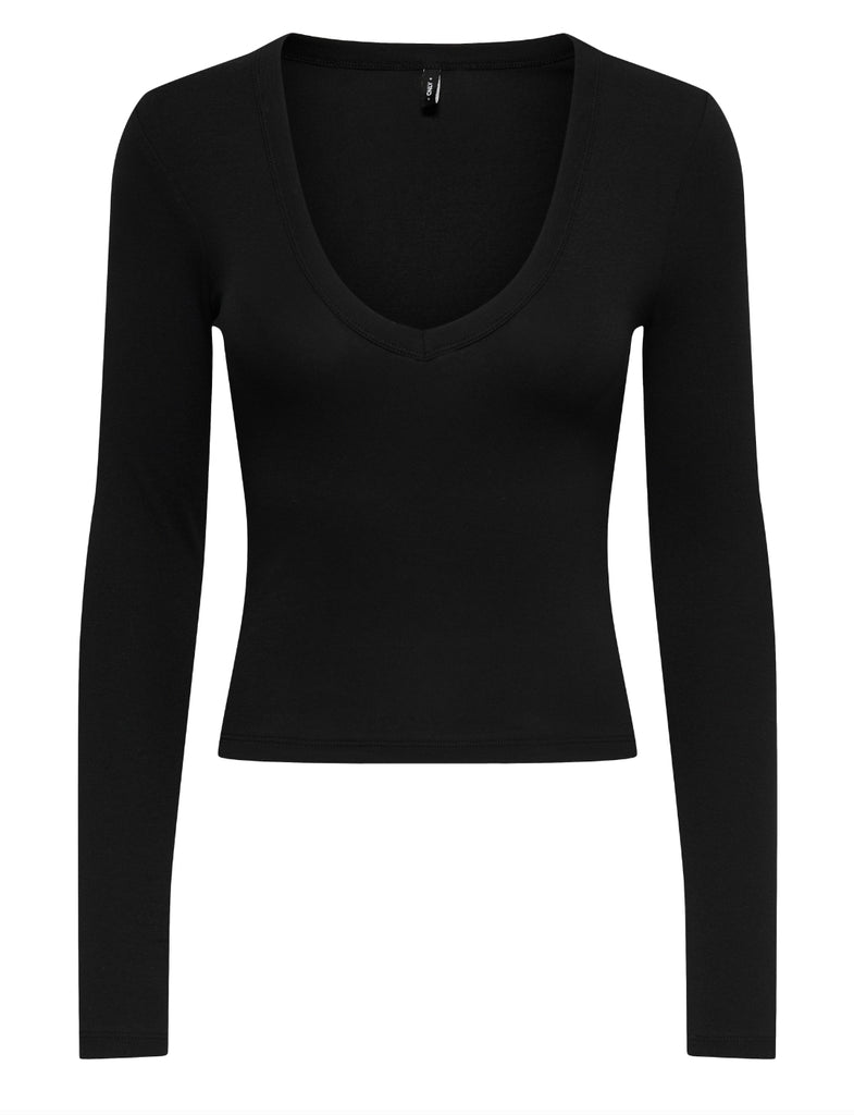 Only Vneck Long Sleeve Basic Top In Black